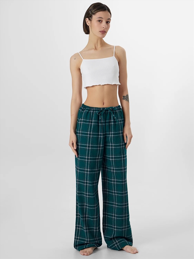 Брюки выполнены из чистого хлопка — натуральный материал нежно заботится о коже, обеспечивая оптимальный температурный баланс. Универсальный дизайн брюк позволяет сочетать их с разными домашними вещами, а практичный состав обеспечивает легкость в уходе.