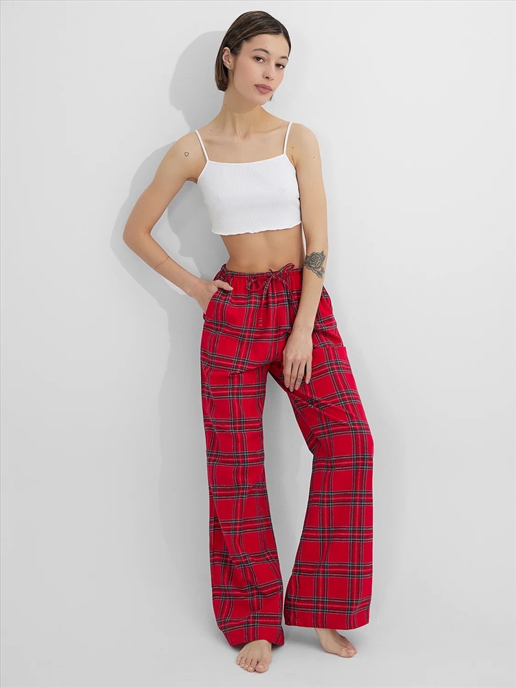 Классическая клетка добавляет образу интересный акцент, а свободный крой гарантирует полную свободу движений. Мягкая текстура ткани дарит приятные тактильные ощущения. Эти брюки станут вашим любимым предметом гардероба для моментов полного расслабления, даря комфорт в течение всего дня.