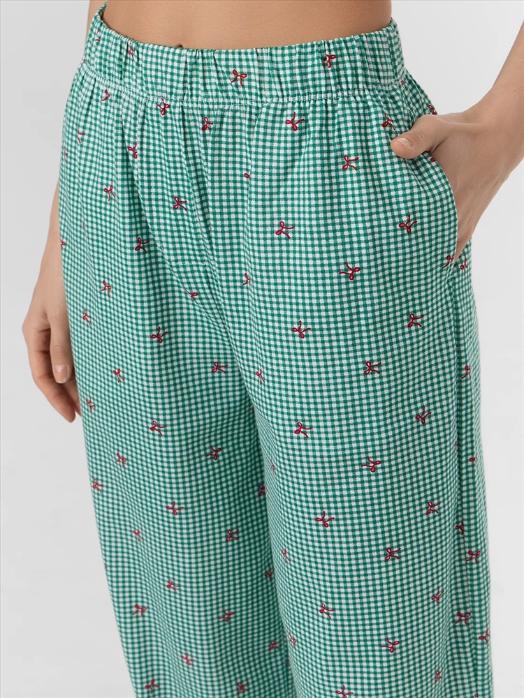 Женские домашние брюки, созданные для тех, кто ценит комфорт и элегантность в повседневной одежде. Они идеально подходят для домашних дел или расслабленных вечеров. Свободный силуэт обеспечивает максимальную свободу движений, а эластичный пояс гарантирует идеальную посадку без чувства стеснения. Практичные карманы в шве добавляют удобства, позволяя держать мелочи под рукой. Изготовленные из высококачественной хлопковой кулирки, эти брюки станут незаменимым элементом вашего домашнего гардероба, даря тепло и уют в любую погоду.