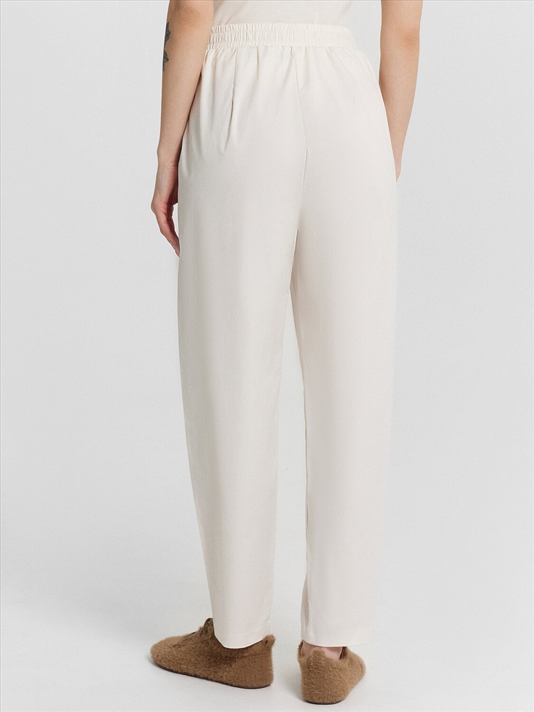 Разнообразьте свой гардероб этими невероятно стильными женскими брюками с высокой посадкой на талии. Они предлагают уникальное сочетание элегантности и комфорта, делая каждый ваш городской образ безупречным. Модель зауженного книзу кроя, подчеркнет изящность вашей фигуры. Эластичный пояс на кулиске не только обеспечивает идеальную посадку, но и добавляет элемент удобства, который будет особенно полезен в повседневной носке. Боковые карманы добавляют стильный акцент дизайну. Изделие выполнено из высококачественного натурального хлопка с небольшим содержанием эластичных волокон, что гарантирует комфорт на протяжении всего дня. Дышащий материал и эластичность ткани обеспечат свободу движения в любой ситуации. Такие брюки станут идеальной основой для множества образов, от повседневных прогулок по городу до уютных вечеров с друзьями.