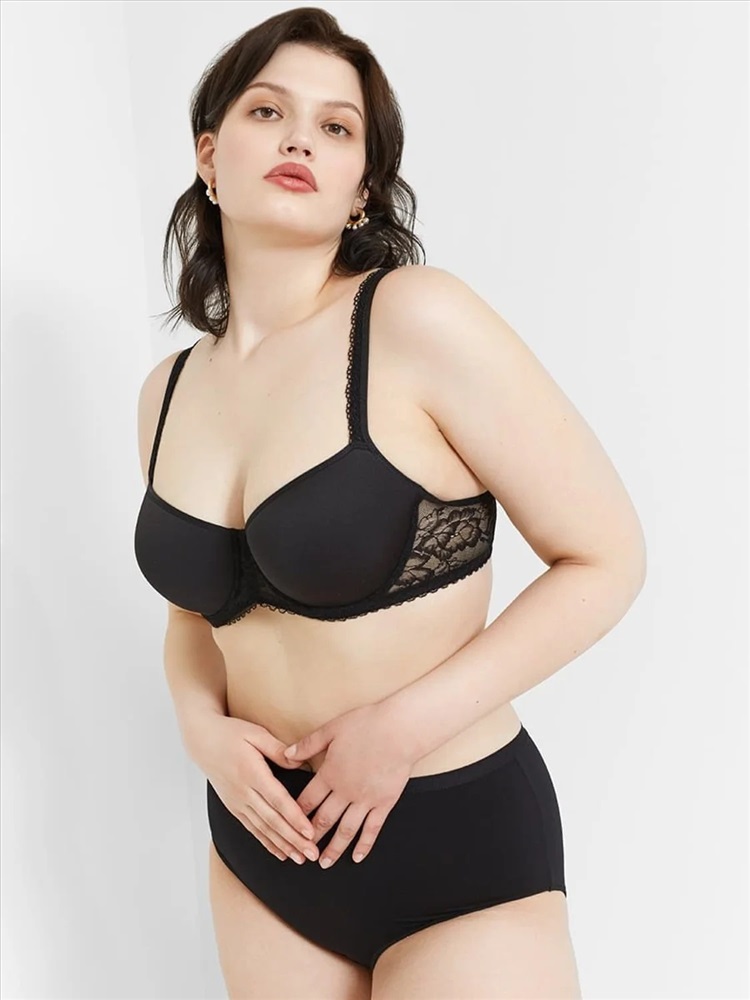 Бюстгальтер-макси с инновационной чашкой-спейсер. Невесомая чашка на косточках из тонкого дышащего материала обеспечивает превосходный комфорт и поддержку. Боковые детали стана из полупрозрачного кружева делают бюстгальтер еще более женственным. Модель идеально подойдет обладательницам пышного бюста.