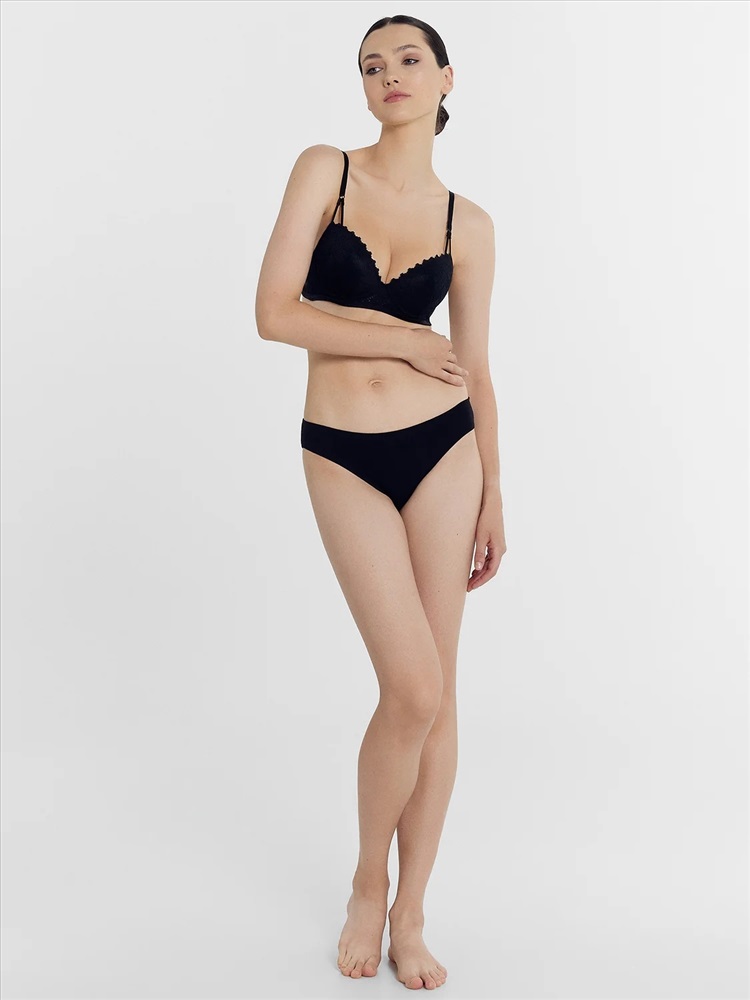 На каркасах. Чашки t-shirt. Бочки из кружева. Чашки из кружева, с вытачками. Ластовица из кружева. Пройма и верхний срез стана обработаны тесьмой жесткой без зуба. Нижний срез стана обработан обтачкой из ткани с тесьмой внутренней. В боковых швах пластины. Застежка. Декоративные бретели-спагетти. Надставки бретелей.
