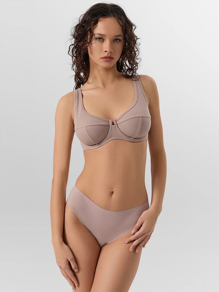 Бюстгальтер макси из рибаны — это комфортная и поддерживающая модель, созданная с особым вниманием к деталям и удобству. Изделие выполнено на подкладке из трикотажной кулирки, что делает его мягким и приятным к телу. Удлинённая чашка плавно переходит в бретель, обеспечивая хорошую посадку и равномерное распределение нагрузки. Верхний срез чашки окантован бейкой из рибаны с эластичной тесьмой внутри, что помогает сохранить форму и обеспечивает мягкое прилегание. Боковой срез чашки и верхний срез бочка также обработаны широкой бейкой с эластичной тесьмой, добавляя надёжности и комфорта. В боковых частях изделия предусмотрены пластины для дополнительной поддержки и устойчивости. Бретели регулируются по длине в зависимости от размера, позволяя индивидуально настроить посадку. Застежка двойная, что обеспечивает надежную фиксацию и удобство в носке. Этот бюстгальтер отлично подойдет для ежедневного использования, особенно для тех, кто ценит комфорт и уверенность в каждой детали.