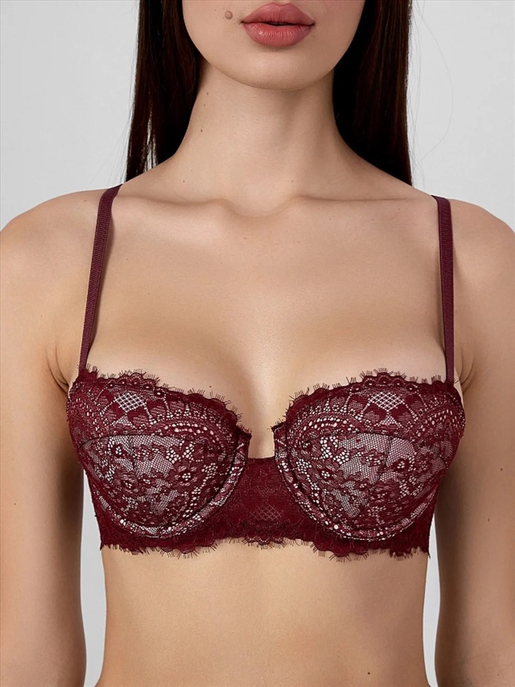 Бюстгальтер с мягкой чашкой из эластичного кружева. Каркас 20 тип. Чашка с тройным членением, на подкладке из дубляжа.