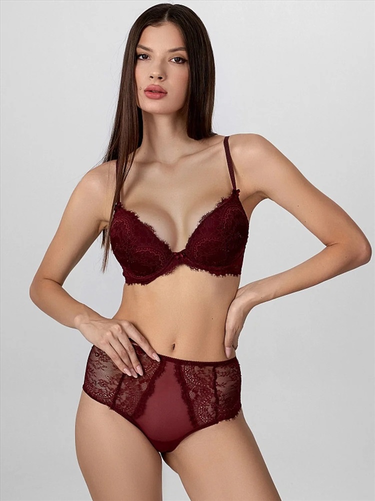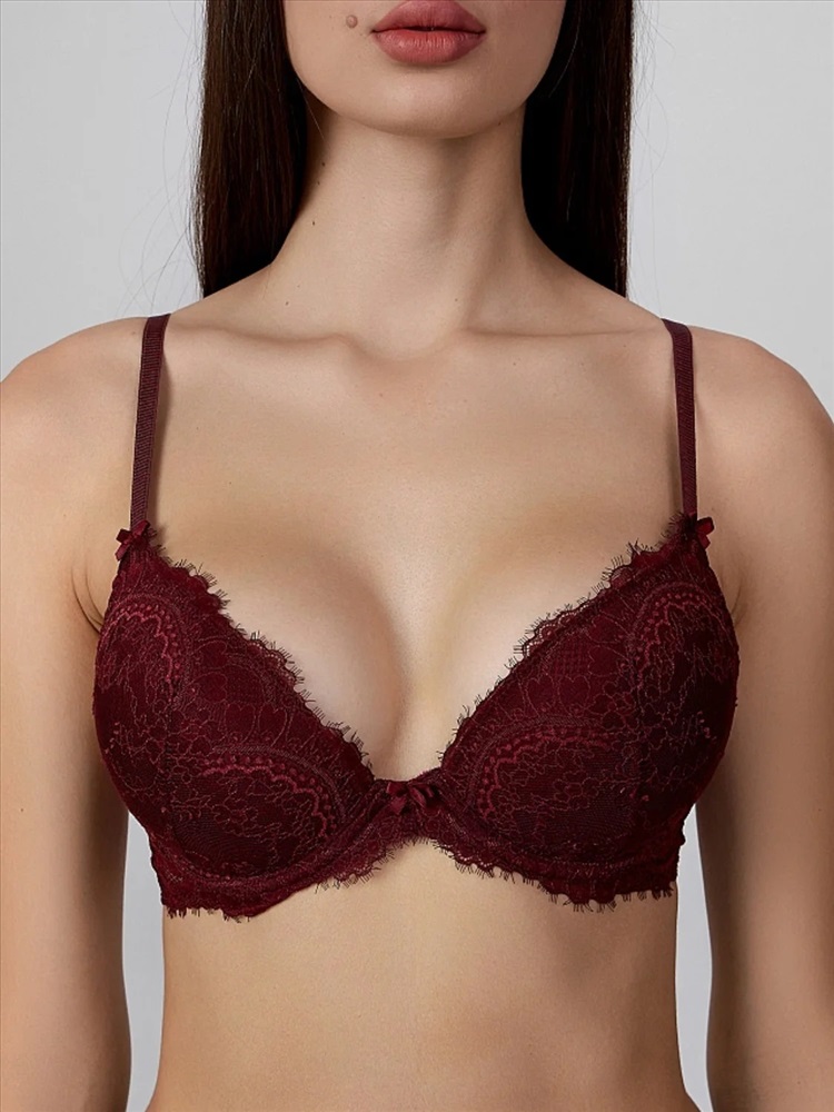 Очаровательный бюстгальтер push-up с формованными чашками из эластичного кружева и сетки – идеальный выбор для создания привлекательного образа. Чашка с вытачкой из эластичного кружева обеспечивает отличную поддержку и придает форму. Боковые детали из сеточки добавляют легкость и воздушность модели. Проймы и верхний срез боковых деталей обработаны эластичной тесьмой, что гарантирует комфорт и надежную фиксацию. А регулируемые бретели и застежка позволяют настроить бюстгальтер под ваши индивидуальные предпочтения. Декоративные бантики, расположенные по центру между чашками и у оснований бретелей, добавляют изысканности и нежности этой модели. Прекрасный выбор для тех, кто ценит стиль и комфорт!