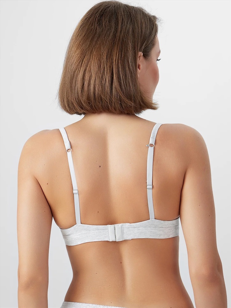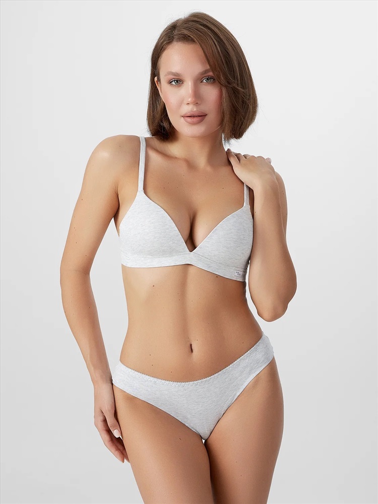 Бюстгальтер женский изготовлен из трикотажного кулирного полотна, с твердыми формоваными чашками, без каркасов.