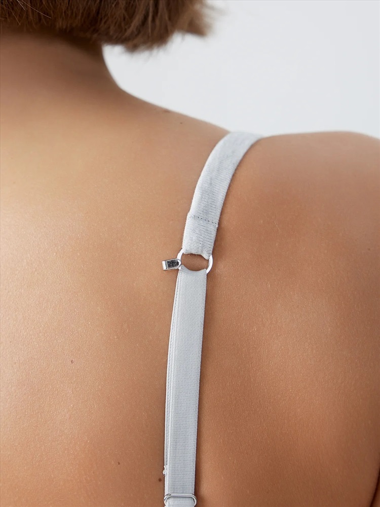 Бретели по размерам 10 мм и 15 мм по размерам регулируются по длине сзади. Бретель с надставкой из основного полотна с эл тесьмой (жесткая б/зуба WTE-10 , WTE1-15, девсел 487W) внутри. Надставка соединяется с бретельной тесьмой 10 мм и 15 мм по размерам (SWE2, девсел 1879W) через кольцо на одной бретели и через застежку-кольцо на другой бретели.