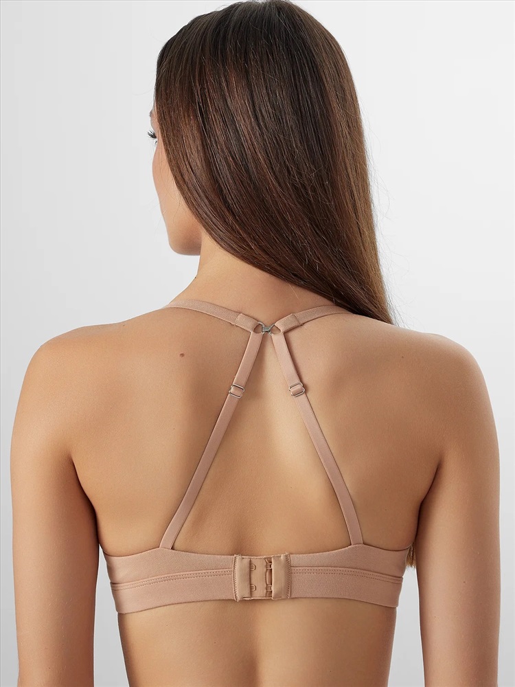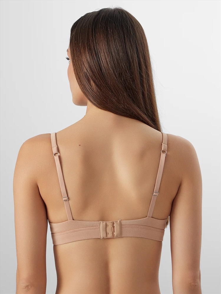 Бюстгальтер женский изготовлен из трикотажного кулирного полотна, с твердыми формоваными чашками, без каркасов.