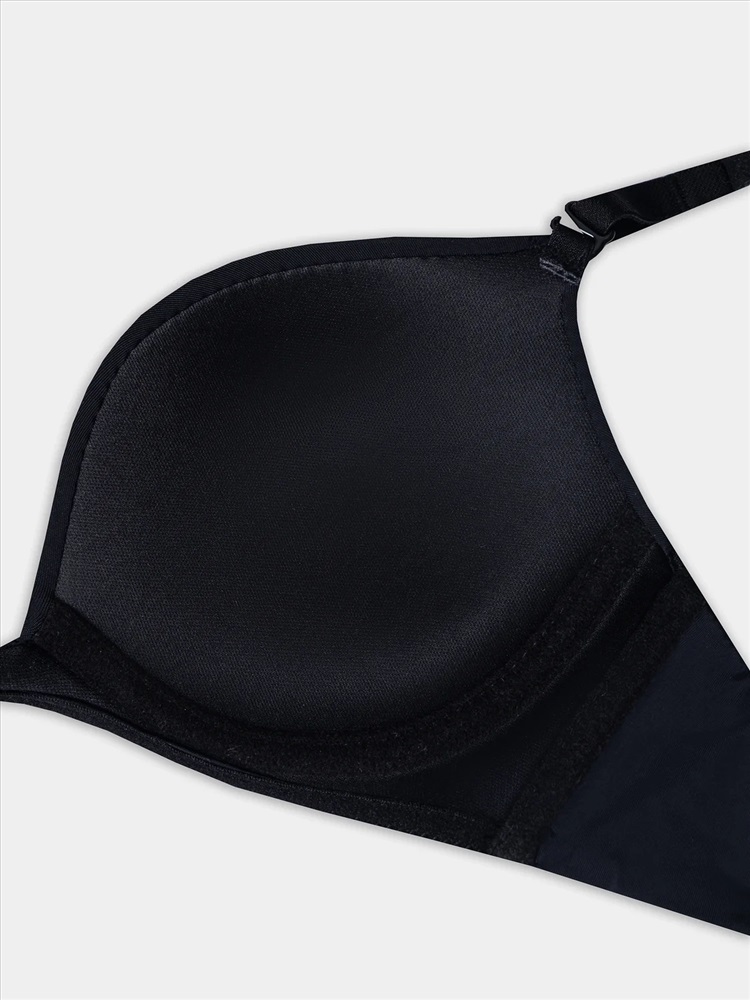 Бюстгальтер женский пушап, на каркасах 63 типа, с формованной чашкой (СС-64.18), без стана. Выполнен из микрофибры с отделкой по чашке кружевом с прямым краем. Чашка обтянута микрофиброй с подформовкой, по верхнему краю деталь из кружева.
