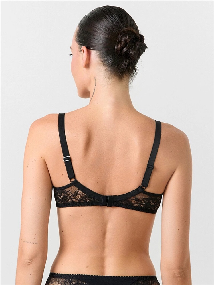 Бюстгальтер макси из эластичного кружева, каркас 47 тип, двойное диагональное членение. Чашки из кружева на подкладке из сетки эластичной, с вытачкой . Верхний срез чашки обтачан подкладкой с эластичной тесьмой 6 мм внутри (Wt4-6, девсел 13460W).