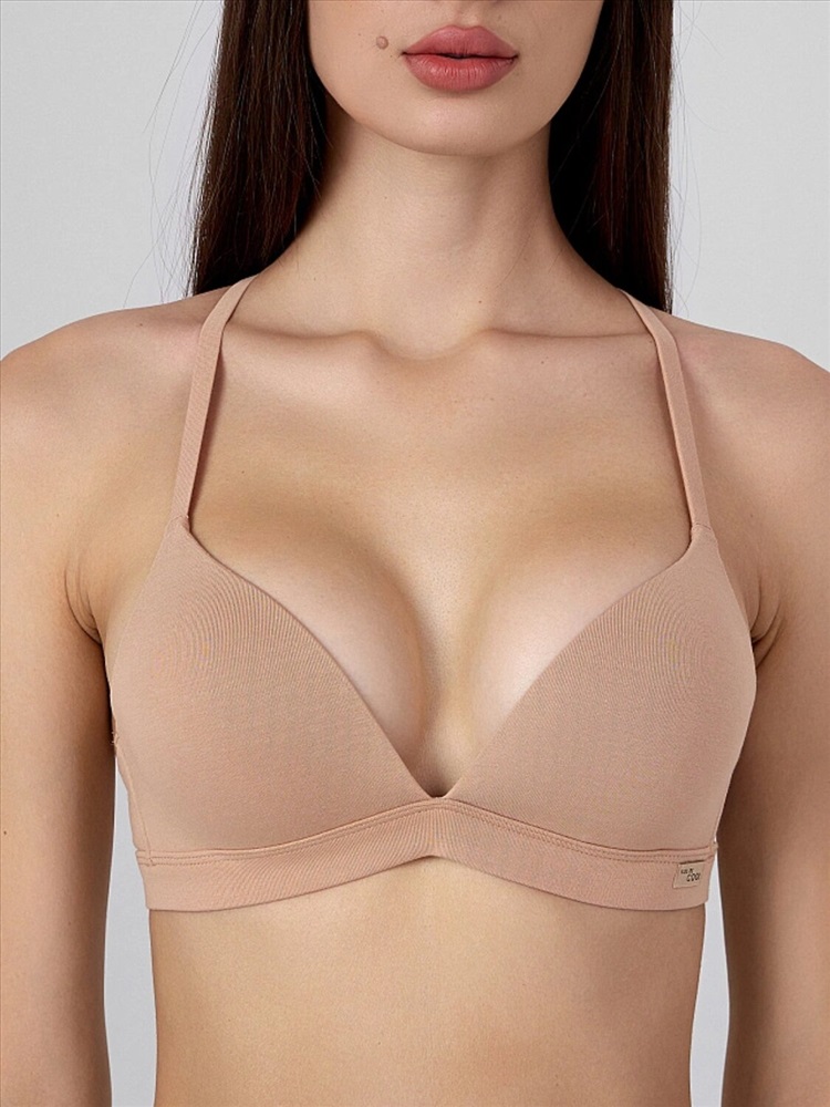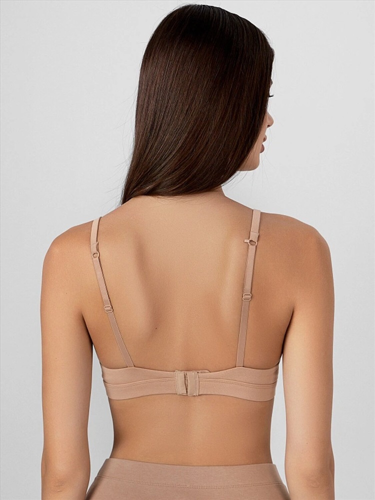 Женский бюстгальтер из трикотажной кулирки сочетает комфорт и надежную поддержку без каркасов. Твердые формованные чашки обеспечивают естественную посадку и удобство, а боковые пластины помогают сохранить форму, создавая красивый силуэт. Регулируемые бретели позволяют легко адаптировать изделие под индивидуальные предпочтения, обеспечивая максимальный комфорт при носке. Двойная застежка на крючки-петли гарантирует надежную фиксацию. Дополните этот бюстгальтер подходящими трусиками, чтобы создать гармоничный комплект, идеально подходящий как для повседневной носки, так и для особых случаев.