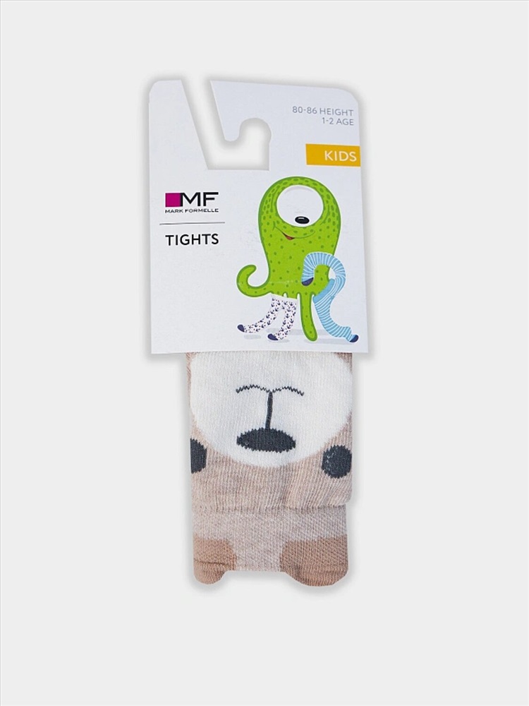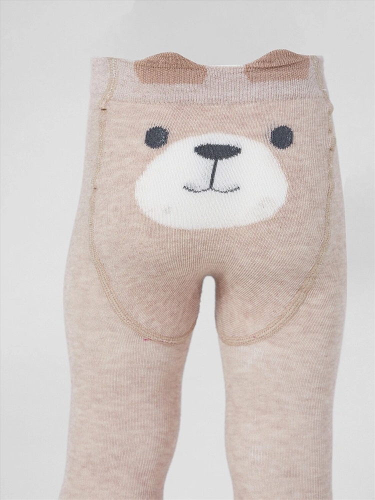 рис.3247 Гладкие колготки с рисунком в виде морды мишки на ластовице.