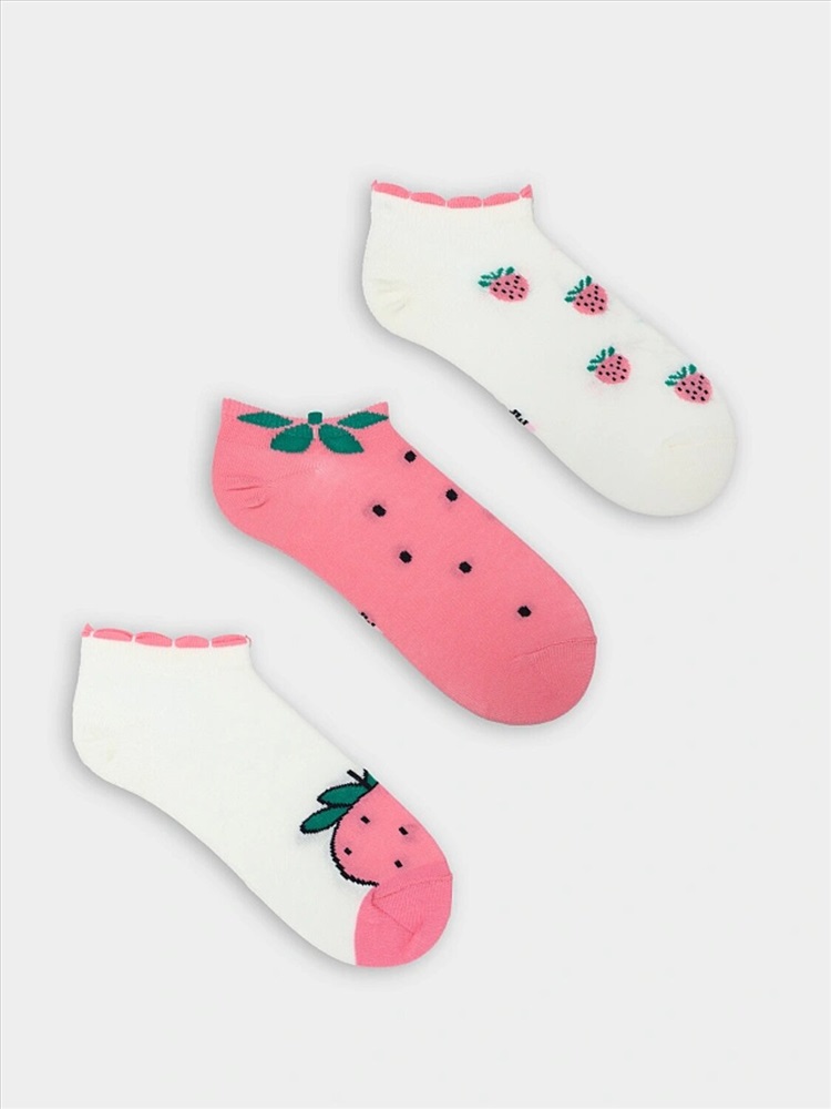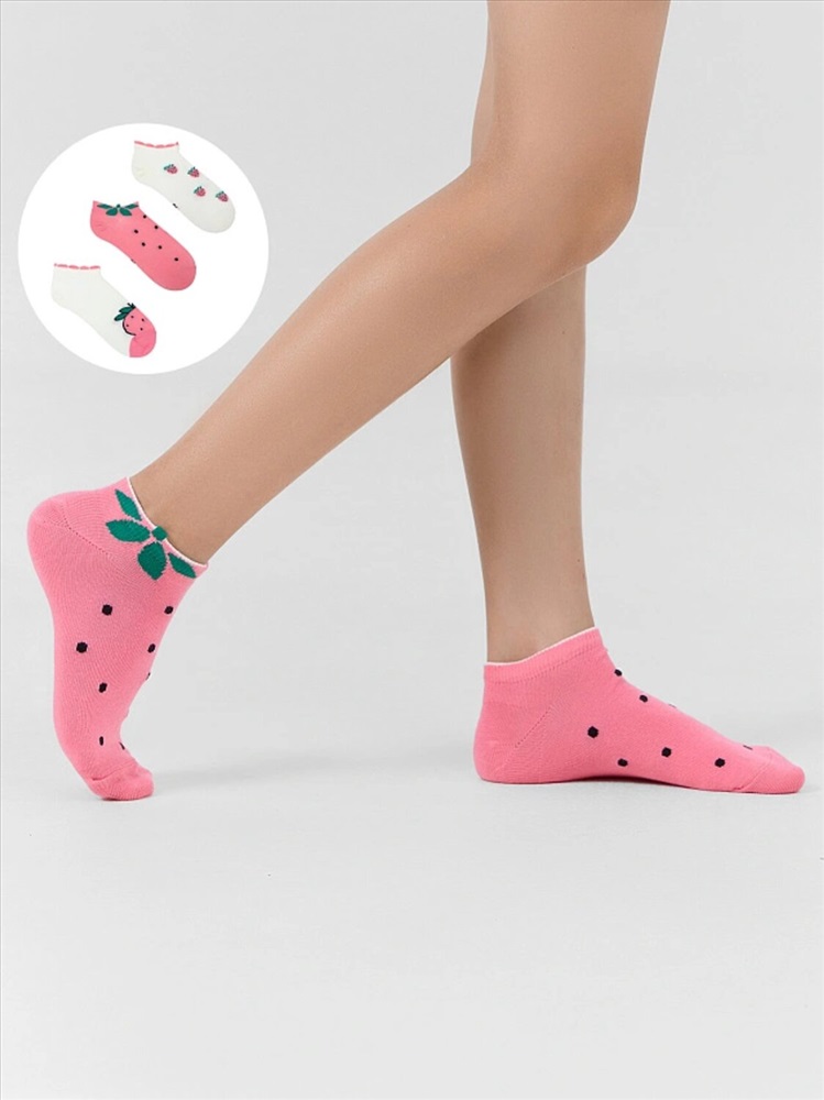 рис.3203 Мультипак из укороченных детских носков с рисунком в виде клубники. Составляющие: 406A-3204, 406A-3205, 406A-3206