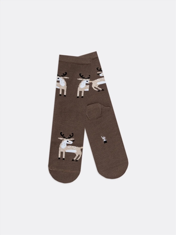 Производитель: MARK FORMELLE; Артикул поставщика: 437K-1426; Состав: 35% шерсть, 35% ПАН, 9% хлопок, 19% ПА, 2% эластан ; Год: 2022; Страна: Беларусь; Пол: Детский; Российский размер: 20; Длина стопы: 18-20 Рис.1426 Детский носок гладкий из тонкой шерсти с рисунком в виде оленей.