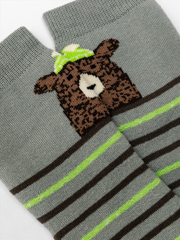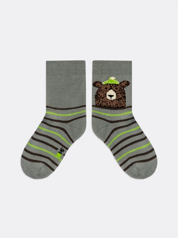 рис.1113 Детский махровый носк с рисунком в виде медведя и полосок