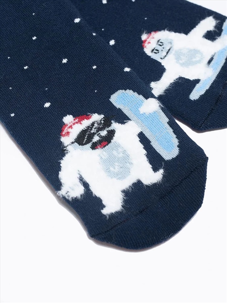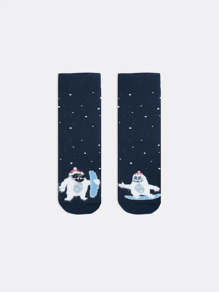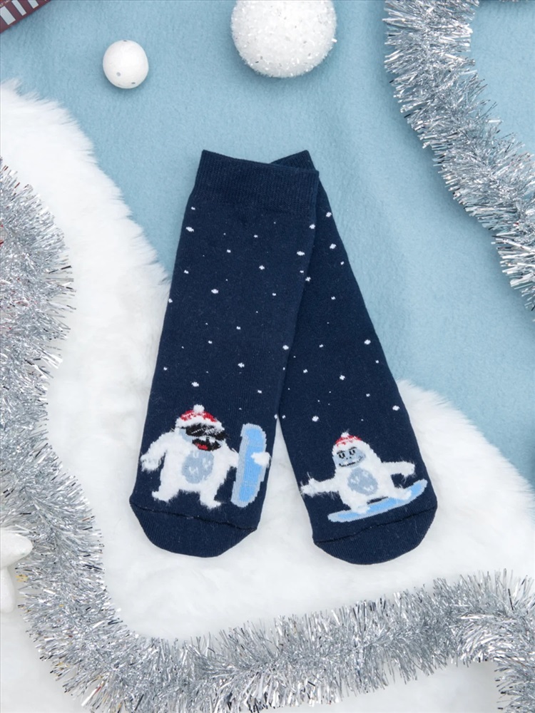 рис.1824 Детский махровый носок с рисунком в виде етти на сноубордах.