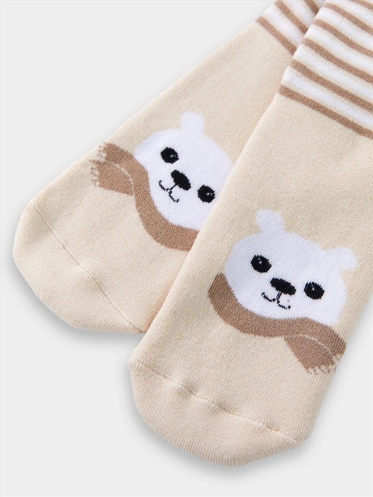 рис.2883 Детский махровый носок с рисунком в виде медведя и полосок.