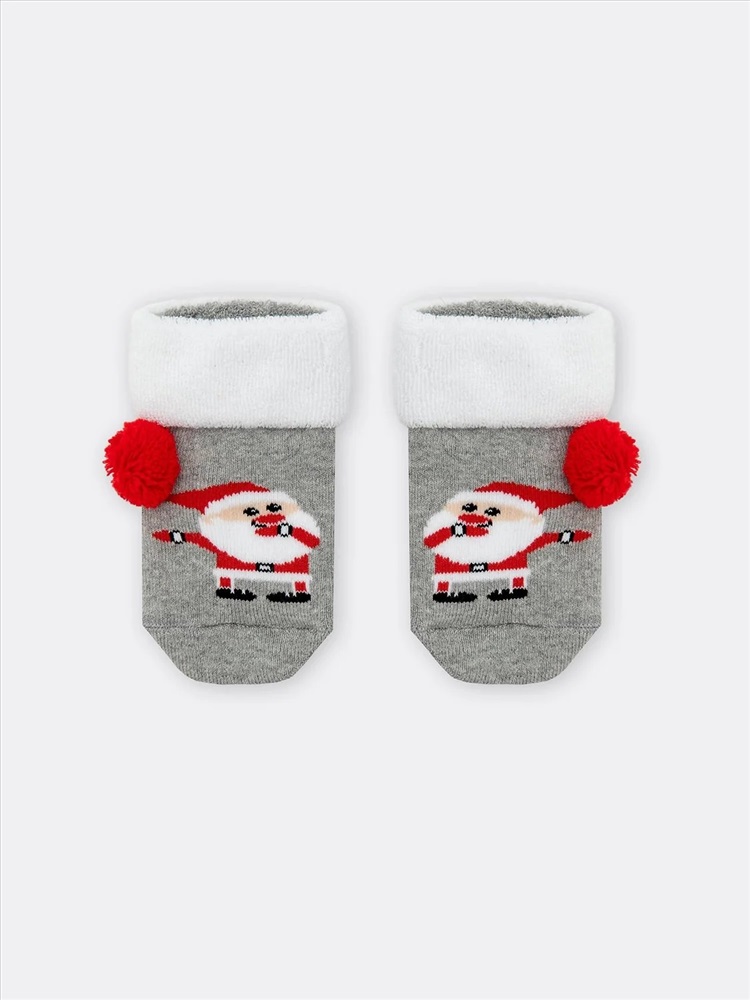 рис.1831 Детский носок махровый с отворотом и новогодним рисунком.
