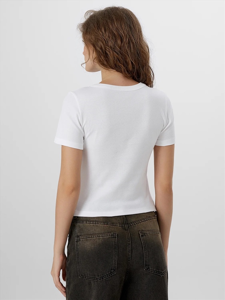 Представляем идеальную базовую модель для вашего гардероба - женскую футболку прилегающего силуэта. Модель с круглым вырезом и короткими рукавами станет незаменимым элементом вашего повседневного стиля. Одним из главных преимуществ этой футболки является материал рибана. Этот эластичный трикотаж изготовлен из натуральных волокон с добавлением эластичных нитей. Рибана отличается высокой мягкостью и приятными тактильными ощущениями, что делает её идеальной для повседневной носки. Материал хорошо тянется и возвращает свою форму, обеспечивая отличную посадку и свободу движений. Рибана также позволяет коже дышать и отводит влагу, что гарантирует комфорт в течение всего дня. Футболка из рибаны долговечна и устойчива к износу, сохраняя свои свойства и внешний вид даже после многократных стирок. Эта модель станет вашим надежным спутником, обеспечивая комфорт, стиль и долговечность. Добавьте её в свой гардероб и наслаждайтесь каждым днем в комфорте и уверенности!