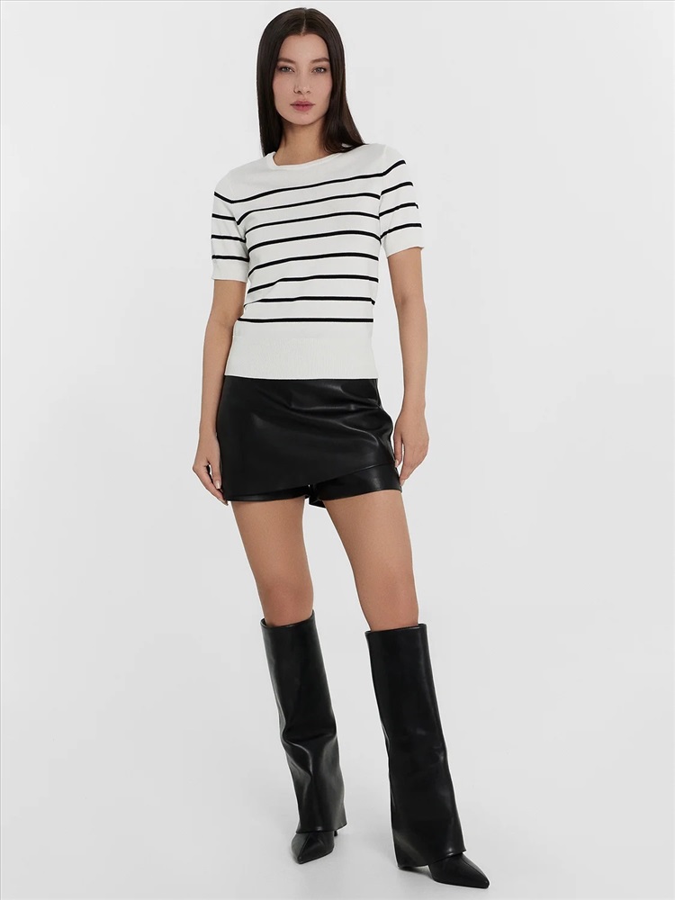 Этот женский джемпер с короткими рукавами и круглым вырезом горловины станет идеальным дополнением вашего гардероба. Изделие выполнено из нежной вискозы, что придает ему особенно мягкую и приятную на ощупь текстуру. Вискоза также обладает отличной воздухопроницаемостью, что делает изделие комфортным для носки в любое время года. Комбинируйте его с брюками, джинсами или юбками для создания стильных и уютных образов.