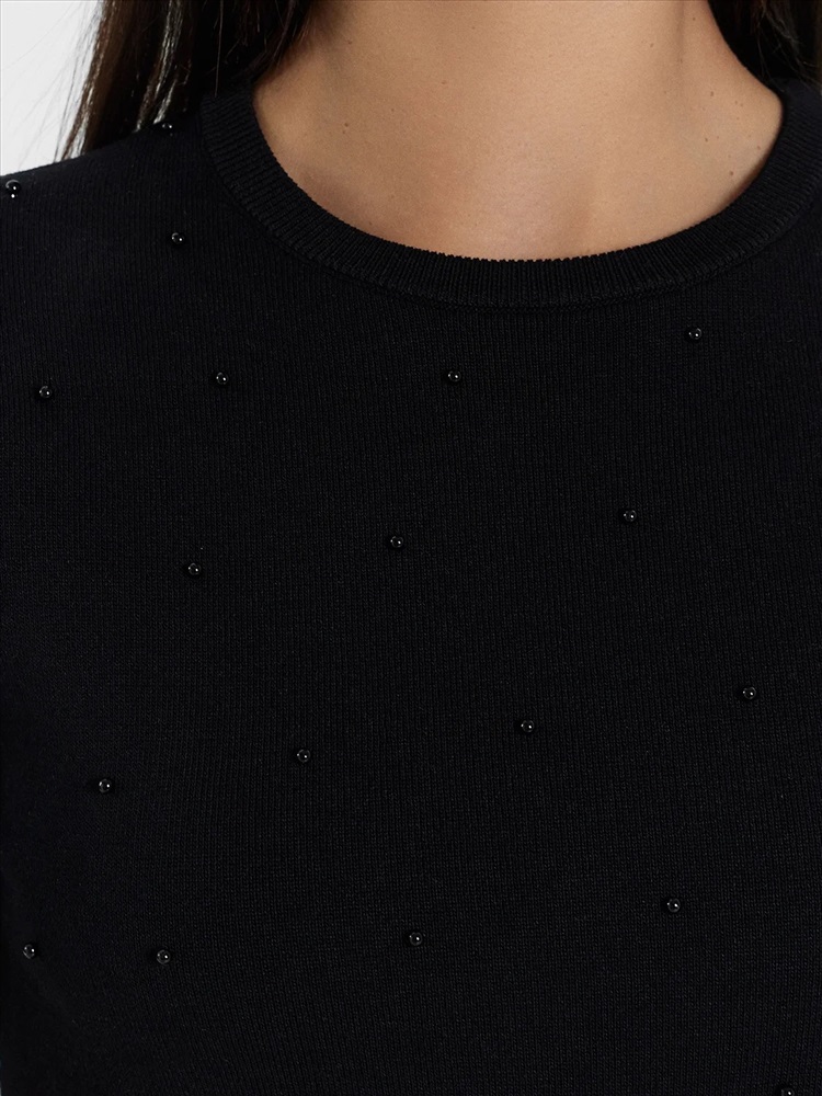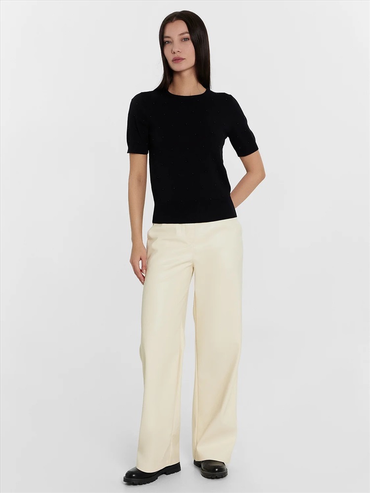 Этот женский джемпер с короткими рукавами и круглым вырезом станет прекрасным дополнением вашего гардероба. Приталенный крой подчеркнёт вашу фигуру, а декоративные бусины добавят милый и элегантный акцент. Изделие выполнено из вискозы с добавлением искусственных волокон, что обеспечивает прочность и долговечность. Джемпер идеально подходит для создания стильных и уютных образов, которые можно легко комбинировать с брюками, джинсами или юбками. Отличный выбор для любого сезона!