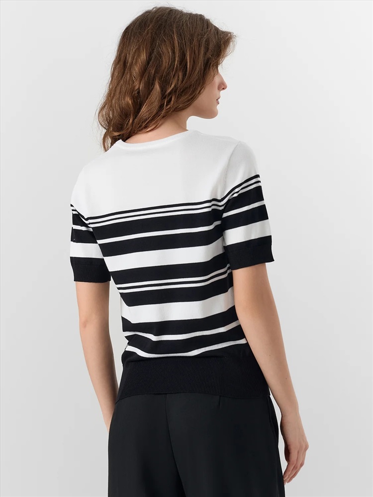 Этот женский джемпер с короткими рукавами и круглым вырезом горловины станет идеальным дополнением вашего гардероба. Изделие выполнено из нежной вискозы, что придает ему особенно мягкую и приятную на ощупь текстуру. Вискоза также обладает отличной воздухопроницаемостью, что делает изделие комфортным для носки в любое время года. Комбинируйте его с брюками, джинсами или юбками для создания стильных и уютных образов.