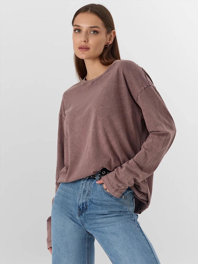 Женский джемпер свободного силуэта, выполненный из нежной кулирки. Этот материал обладает исключительной мягкостью и комфортом, делая джемпер идеальным для повседневного ношения. Круглый вырез горловины и длинные рукава со спущенной линией плеча придают джемперу современный и стильный вид. Свободный силуэт обеспечивает дополнительную свободу движений и удобство. Этот джемпер станет прекрасным выбором для создания уютного и современного образа. Рекомендуем!