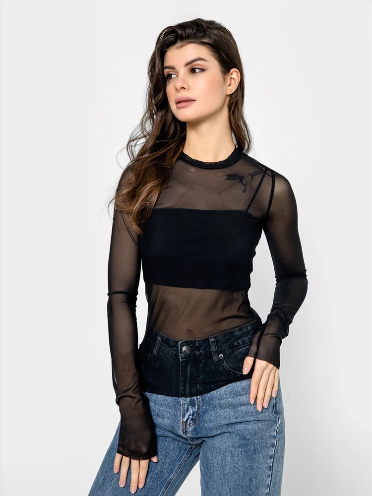 Джемпер женский прилегающего силуэта из трикотажного полотна сетка.