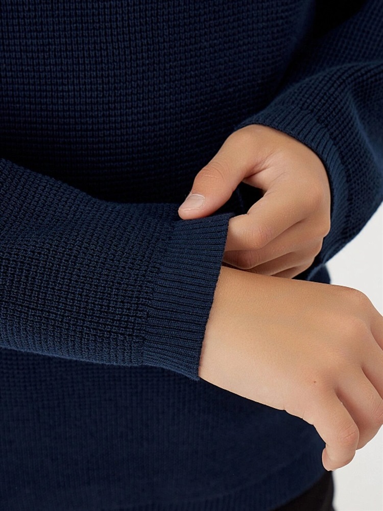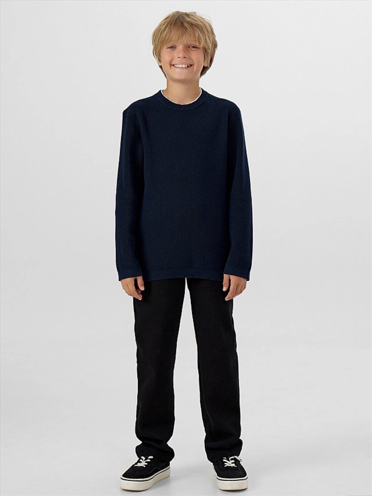 Джемпер для мальчиков прямого кроя — это удобная и практичная модель, идеально подходящая для повседневной носки. Округлый вырез горловины оформлен аккуратно, обеспечивая комфортную посадку и легкость в надевании. Длинные рукава делают изделие универсальным для межсезонья и прохладной погоды. Джемпер выполнен из мягкого смесового хлопка с добавлением искусственных волокон, что придает ткани прочность, устойчивость к износу и сохраняет форму даже после многократных стирок. Материал приятен к телу, хорошо пропускает воздух и обеспечивает комфорт в течение всего дня. Модель легко сочетается с джинсами, брюками или спортивной одеждой, оставаясь актуальной в любом образе.