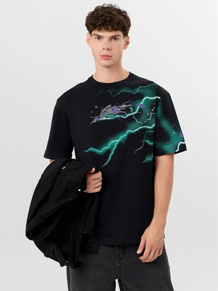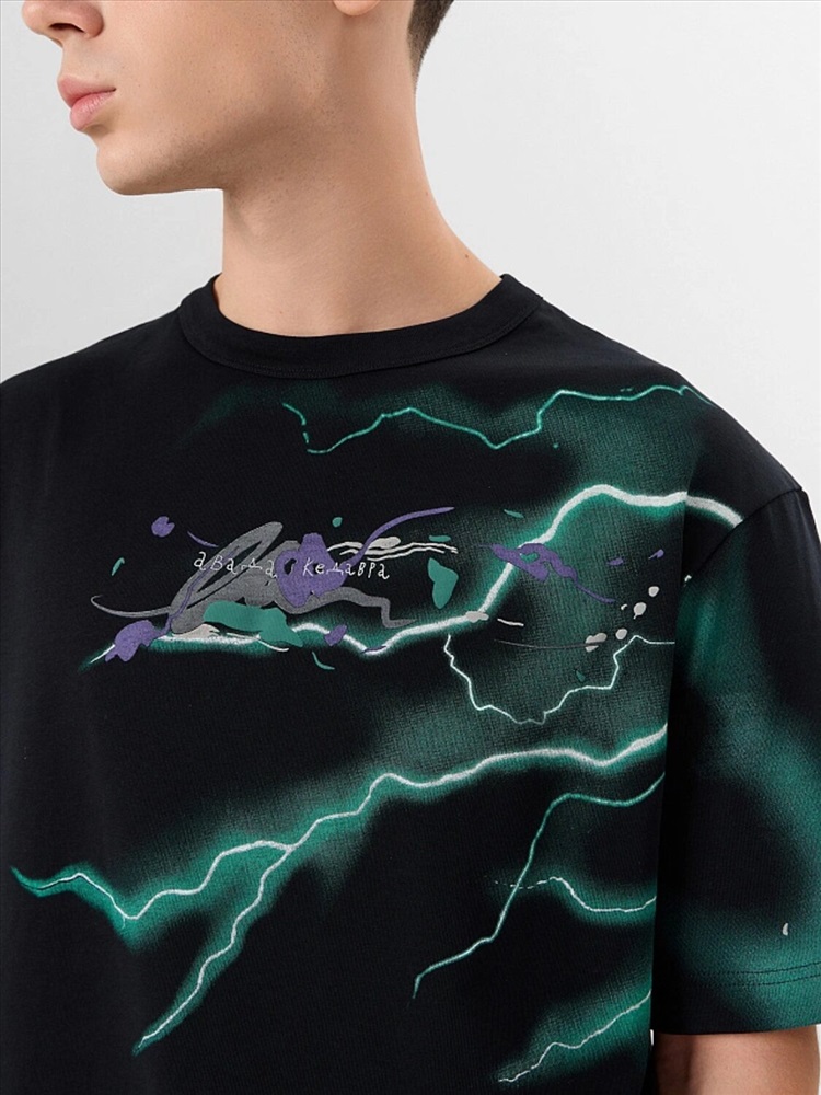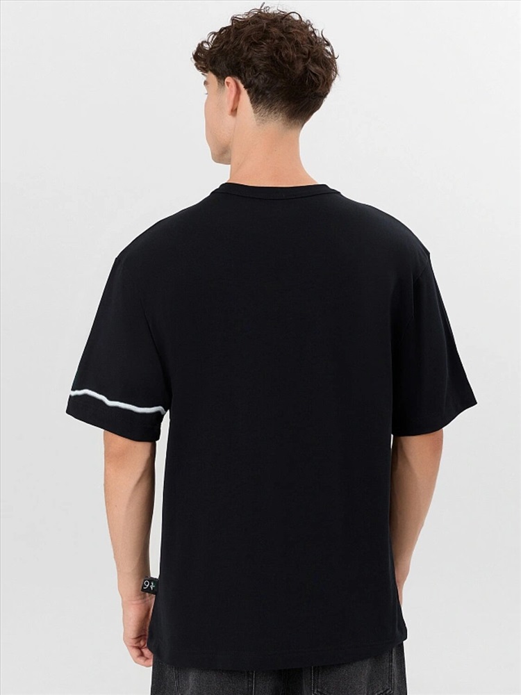 Эта мужская футболка — практичный и комфортный вариант для повседневного гардероба. Свободный прямой силуэт обеспечивает удобную посадку и свободу движений, а длина до линии бедер делает модель универсальной и гармоничной для разных типов фигуры. Горловина округлой формы обработана бейкой из рибаны, что добавляет эластичность и устойчивость к деформации. Спущенное плечо создает современный расслабленный стиль, а короткие рукава делают футболку идеальной для теплого сезона. Материал — кулирка — обладает рядом преимуществ. Этот трикотаж отличается мягкостью, лёгкостью и высокой воздухопроницаемостью, обеспечивая комфорт при носке. Натуральный хлопок в составе кулирки делает изделие гипоаллергенным и приятным к коже. Кулирка также хорошо держит форму и остаётся устойчивой к износу, что делает футболку долговечной. Низ модели и рукавов обработан швом в подгибку, что подчёркивает аккуратность исполнения и продлевает срок службы изделия. Отличный вариант для повседневных образов, сочетающий стиль, комфорт и качество!