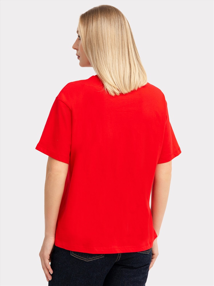 Хлопковая футболка свободного силуэта из трикотажной кулирки. Вырез круглой формы. Свободу движений гарантируют спущенная линия плеча и углубленная пройма. Рукава широкие, чуть выше локтя. Стильная модель!