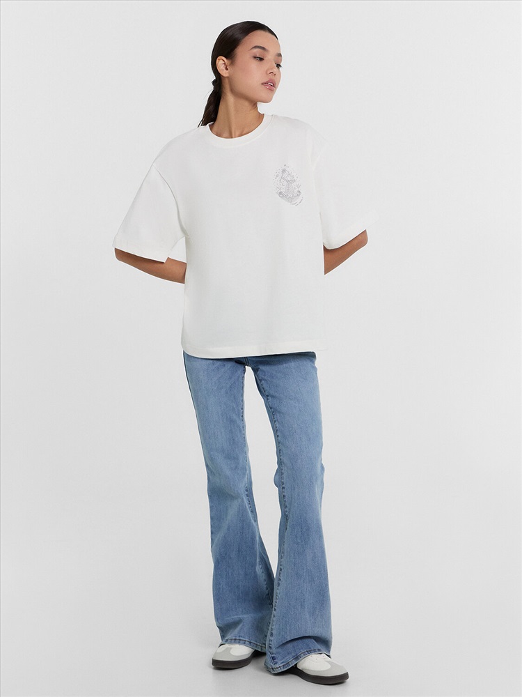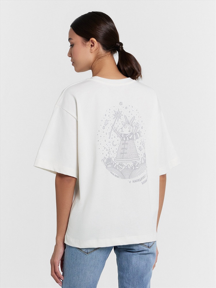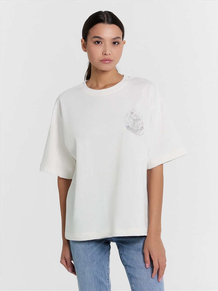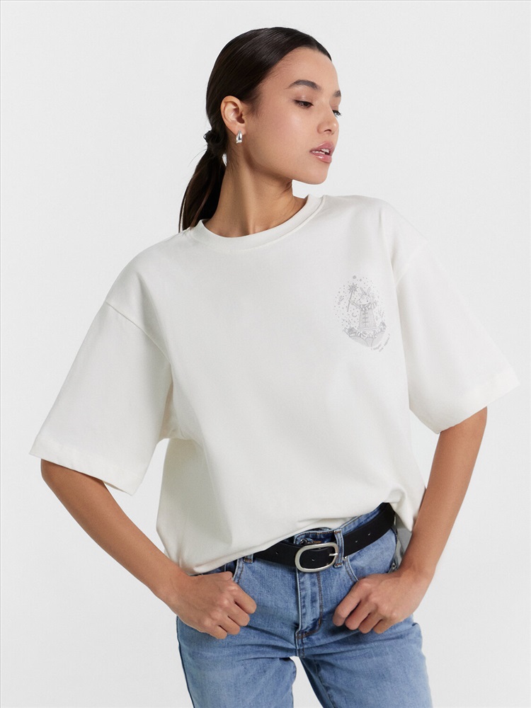 Женская футболка оверсайз, выполненная из нежной кулирки, материала, отличающегося мягкостью и приятными тактильными ощущениями. Такая ткань отлично пропускает воздух, позволяя коже дышать, а также обладает высокой износостойкостью, что гарантирует долгий срок службы изделия, и сохраняет форму даже после многочисленных стирок. Футболка свободного кроя с округлой горловиной и рукавами со спущенной линией плеча создаёт расслабленный и современный образ. Этот стильный элемент гардероба идеально подходит для повседневного ношения, прогулок и встреч с друзьями. Добавьте её в свой гардероб и наслаждайтесь качеством и комфортом каждый день!