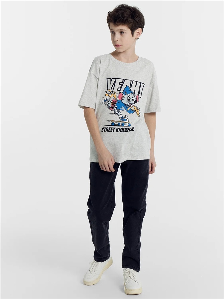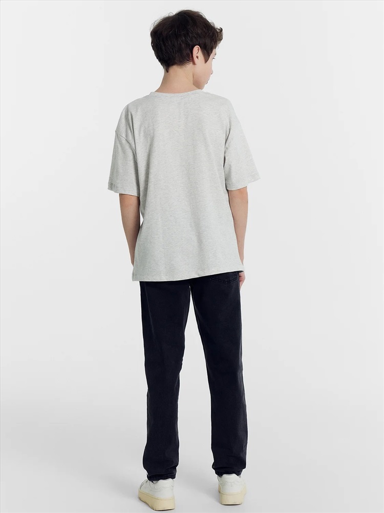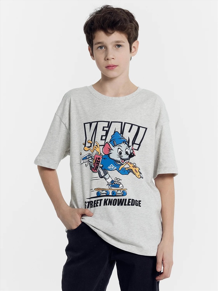 Футболка свободного силуэта из хлопковой трикотажной кулирки. Длина до середины бедер. Рукава короткие. Горловина круглой формы, с обтачкой из рибаны. Спущенная линия плеча дарит особый комфорт. Стильно и удобно!