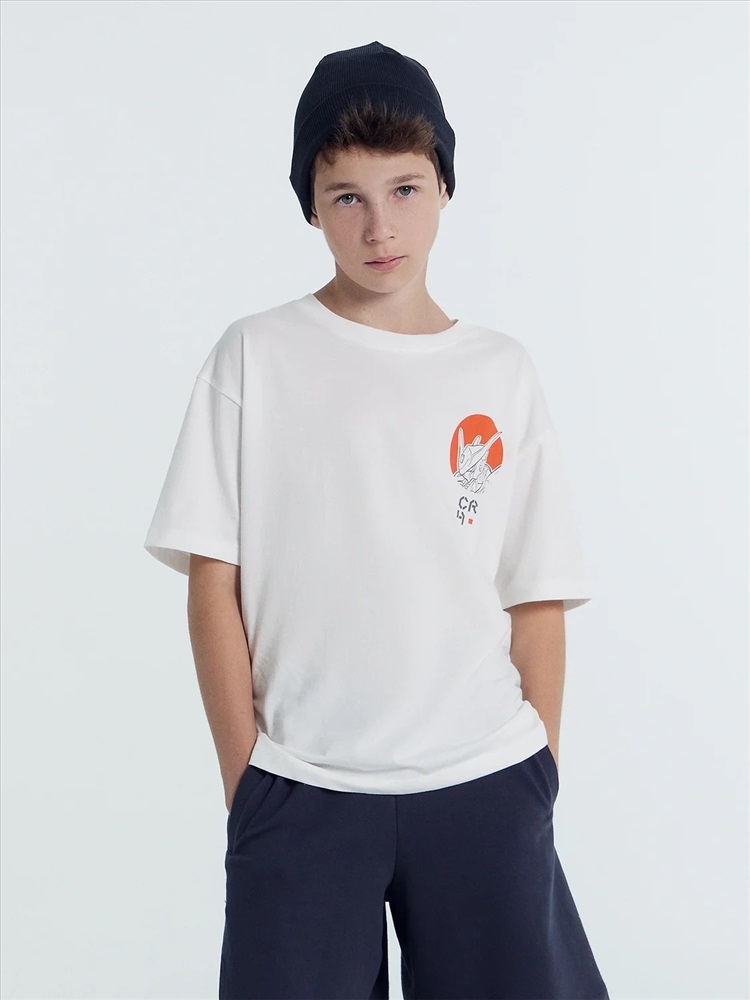 Футболка свободного силуэта из хлопковой трикотажной кулирки. Длина до середины бедер. Рукава короткие. Горловина круглой формы, с обтачкой из рибаны. Спущенная линия плеча дарит особый комфорт. Стильно и удобно!