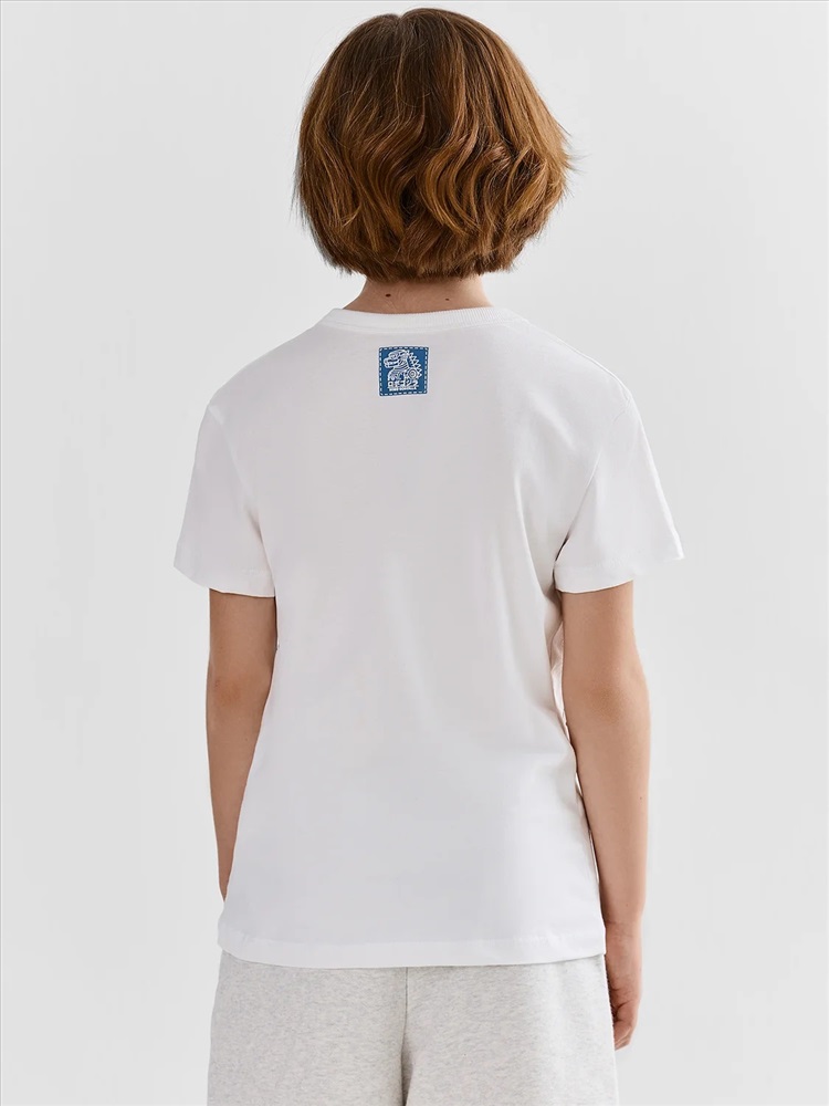 Футболка для мальчиков прямого силуэта станет прекрасным дополнением к базовому гардеробу. Короткие рукава и круглая горловина придают ей классический и универсальный вид. Модель, выполненная из хлопковой кулирки, обеспечивает мягкость и воздухопроницаемость, что делает её комфортной и приятной для носки. Хлопковая кулирка – это прочный и долговечный материал, который хорошо держит форму и сохраняет яркость цветов даже после многочисленных стирок. Эта футболка идеально подходит для повседневного ношения, активных игр и занятий.