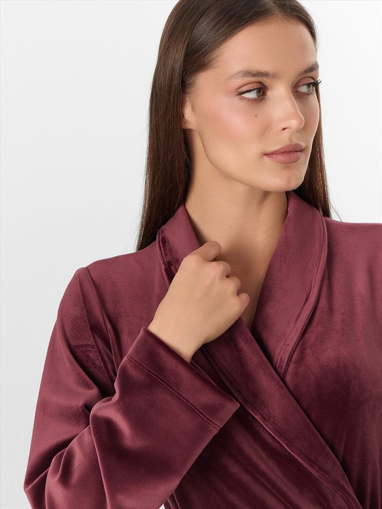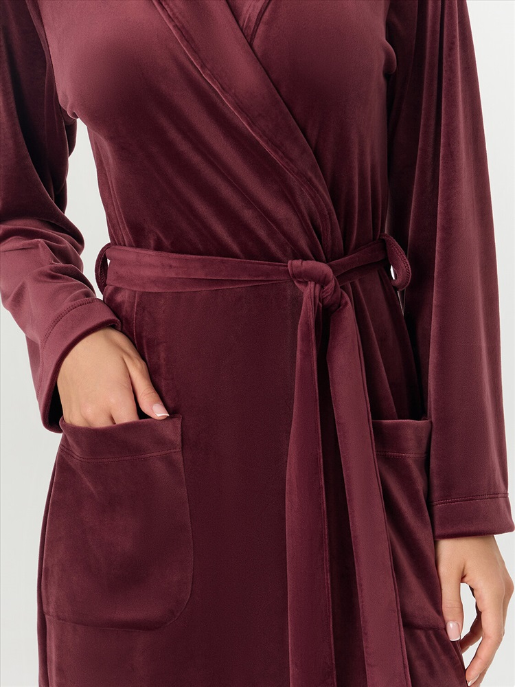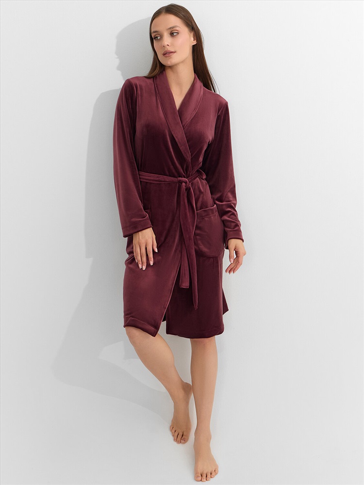 Бархатистый велюр с добавлением эластана мягко облегает фигуру, сохраняя тепло и даря невероятные тактильные ощущения. В этом халате так приятно пить утренний кофе, читать книгу вечером или встречать близких — вы всегда будете выглядеть собранной и элегантной даже в моменты отдыха.