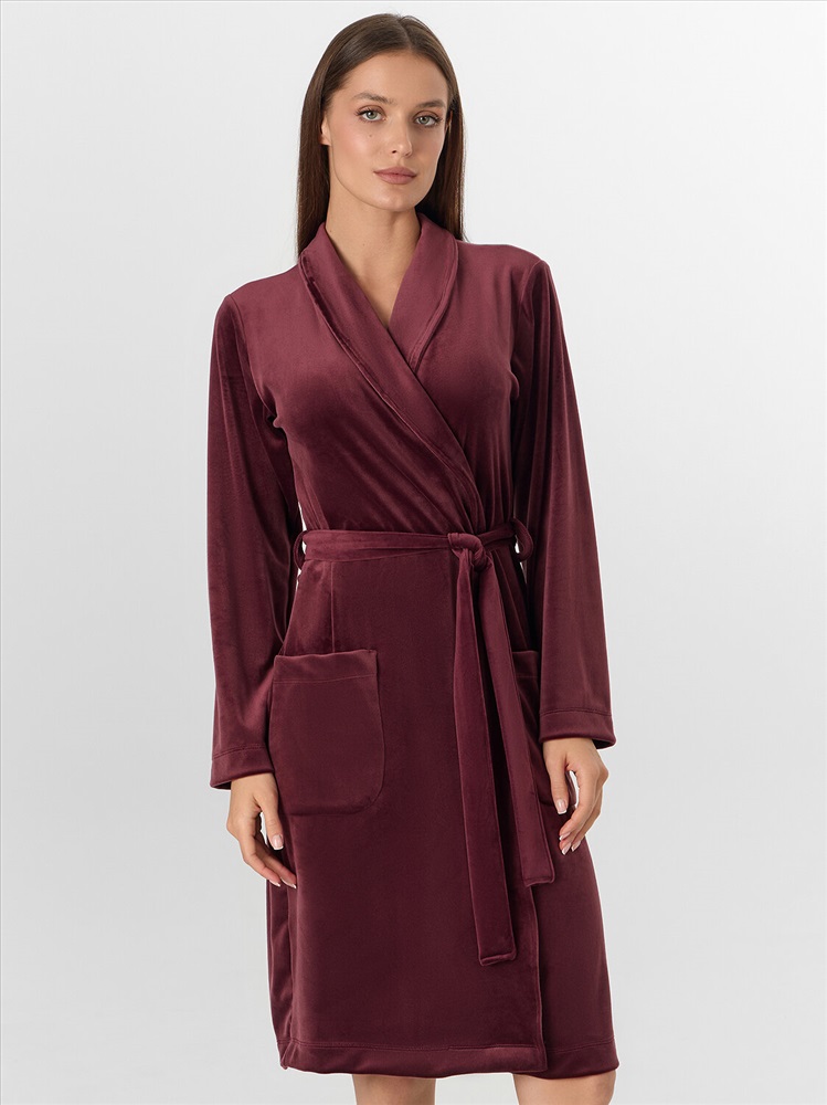 Велюровый халат для женщин — это уют, который чувствуется с первого прикосновения. Модель длиной до колена с мягким запахом и поясом нежно обволакивает фигуру, создавая ощущение теплой заботы. Длинные рукава и удобные боковые карманы обеспечивают максимальный комфорт во время носки.