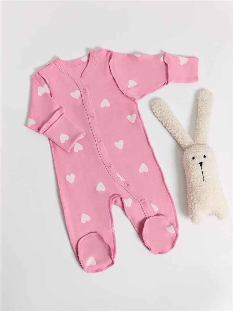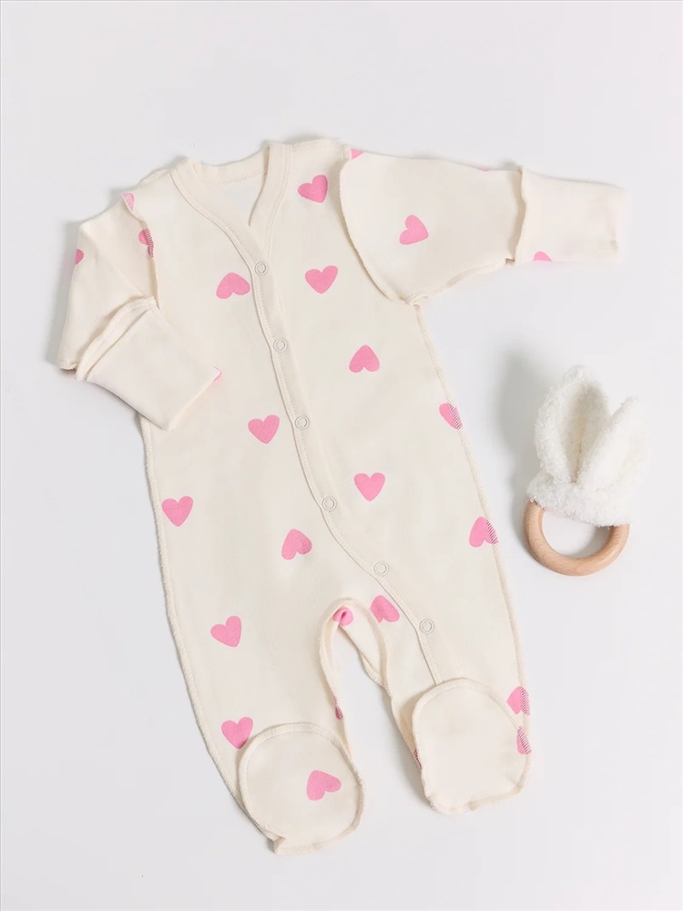 Комбинезон выполнен из интерлока для 1-3 месяцев (рост 56-62). Швы на лицевой стороне изделия. Спинка цельнокроенная.