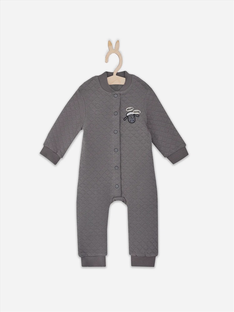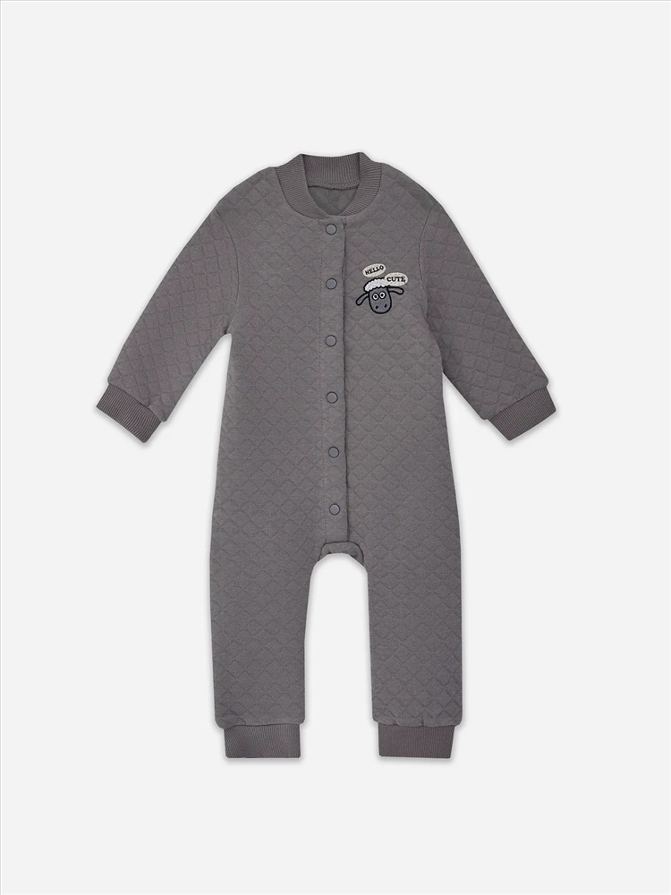 Комбинезон детский выполнен из капитона. Спинка цельнокроенная.