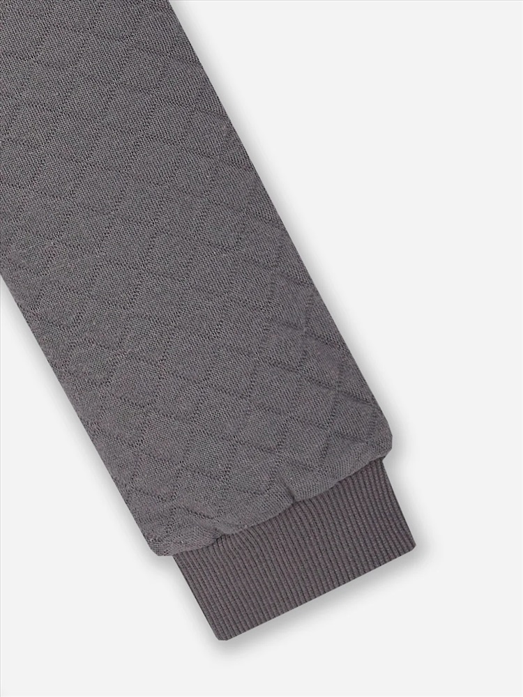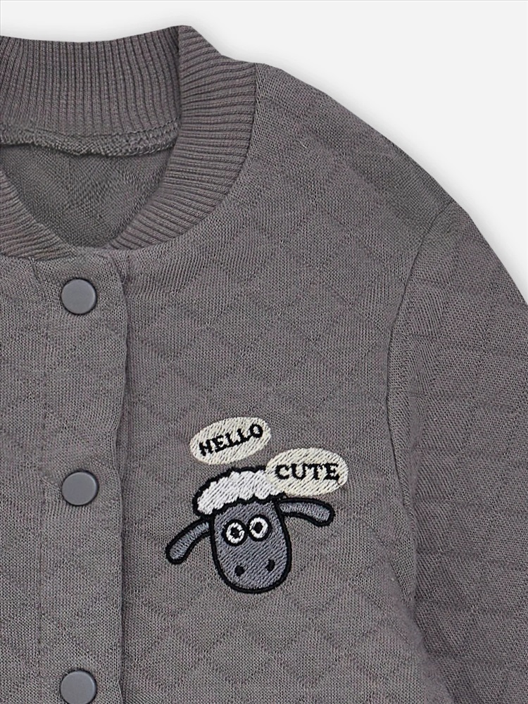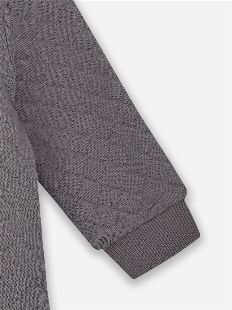 По низу рукавов и ножек притачные манжеты из трикотажной рибаны 2*2 R-6, R22-062.01.360, 96% хлопок; 4% эластан, 360 гр/м?, 135 см. По шаговому шву притачная ластовица.