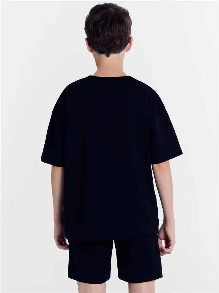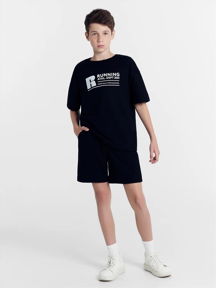 Стильный комплект для мальчиков. Состоит из футболки и шортов. Выполнен из лёгкого футера без подчёса. Футболка прямого свободного силуэта, длиной до середины бедер, с круглой горловиной и короткими рукавами. Шорты длиной до колен или чуть выше, свободные, с боковыми карманами. В пояс из рибаны вставлен регулировочный шнур. Отличный комплект – рекомендуем!