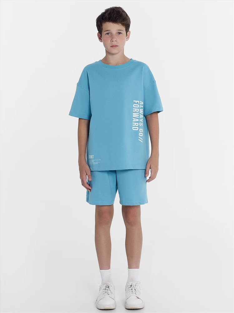 Стильный комплект для мальчиков. Состоит из футболки и шортов. Выполнен из высококачественного хлопка. Футболка прямого свободного силуэта, длиной до середины бедер, с круглой горловиной и короткими рукавами. Шорты длиной до колен или чуть выше, свободные, с боковыми карманами. В пояс из рибаны вставлен регулировочный шнур. Отличный вариант для повседневной носки, прогулок и путешествий. Широкий размерный ряд. Рекомендуем!