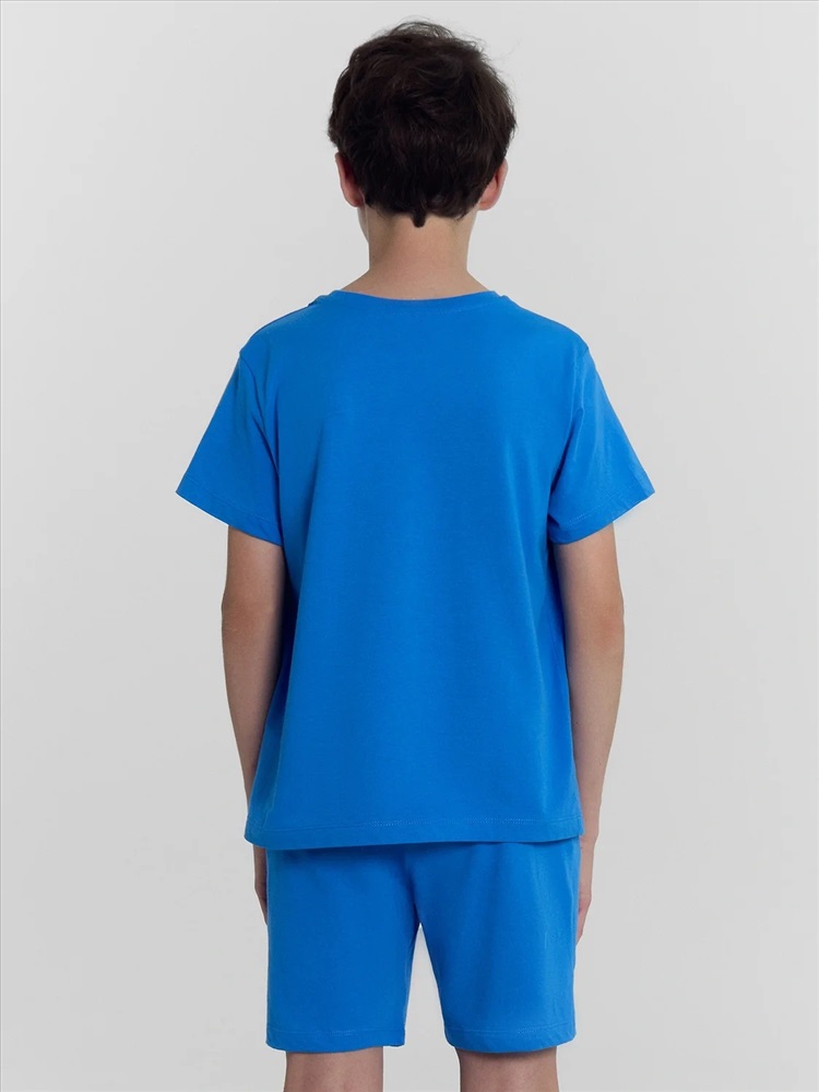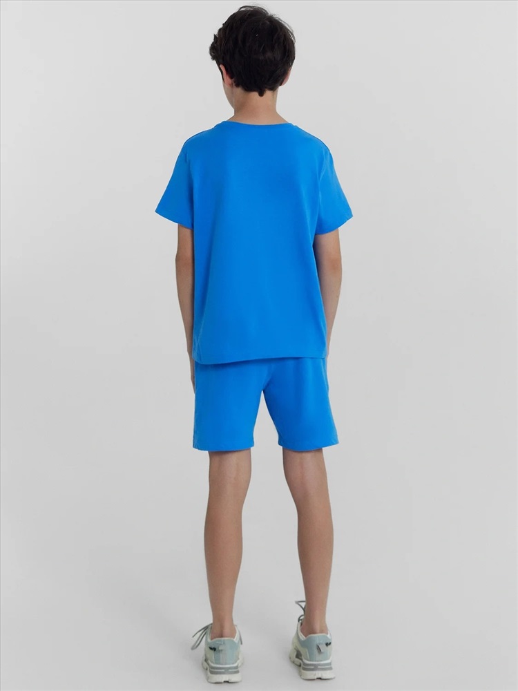 Комплект для мальчиков состоит из футболки верхней и шорт.