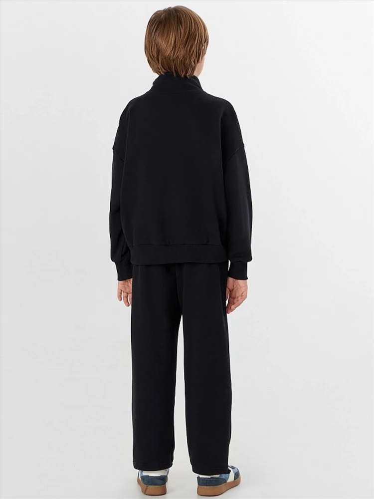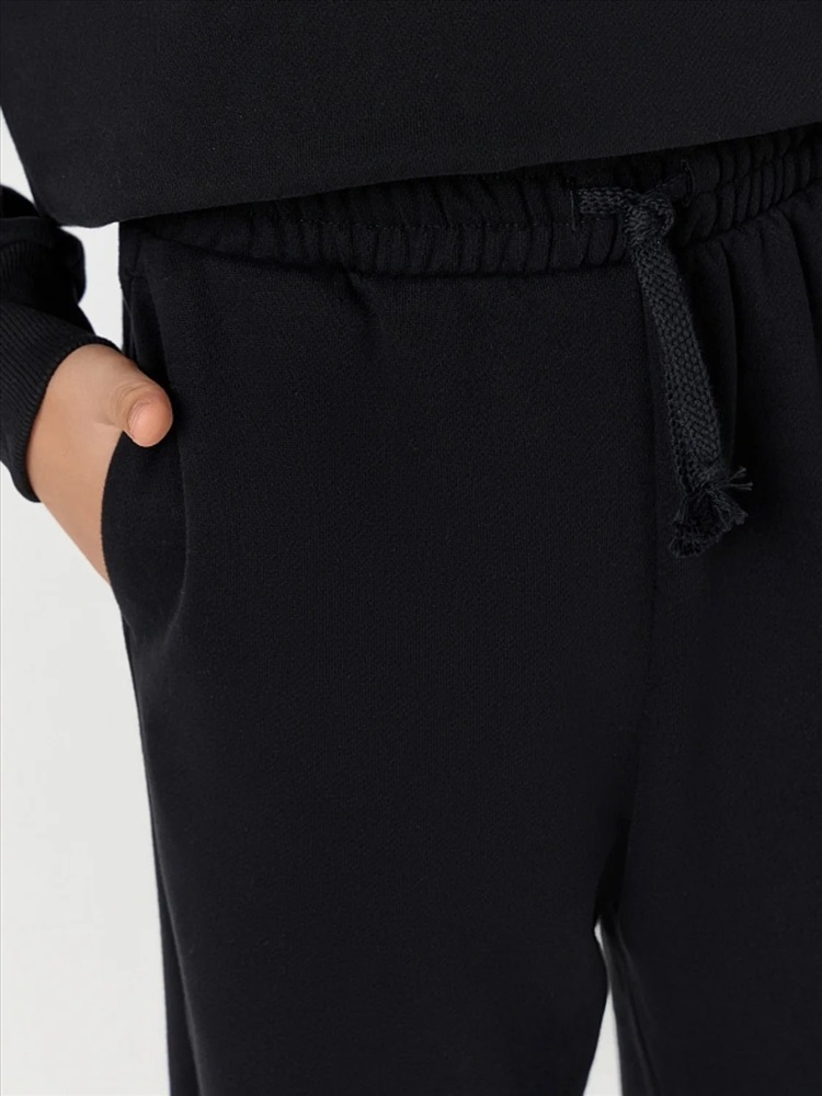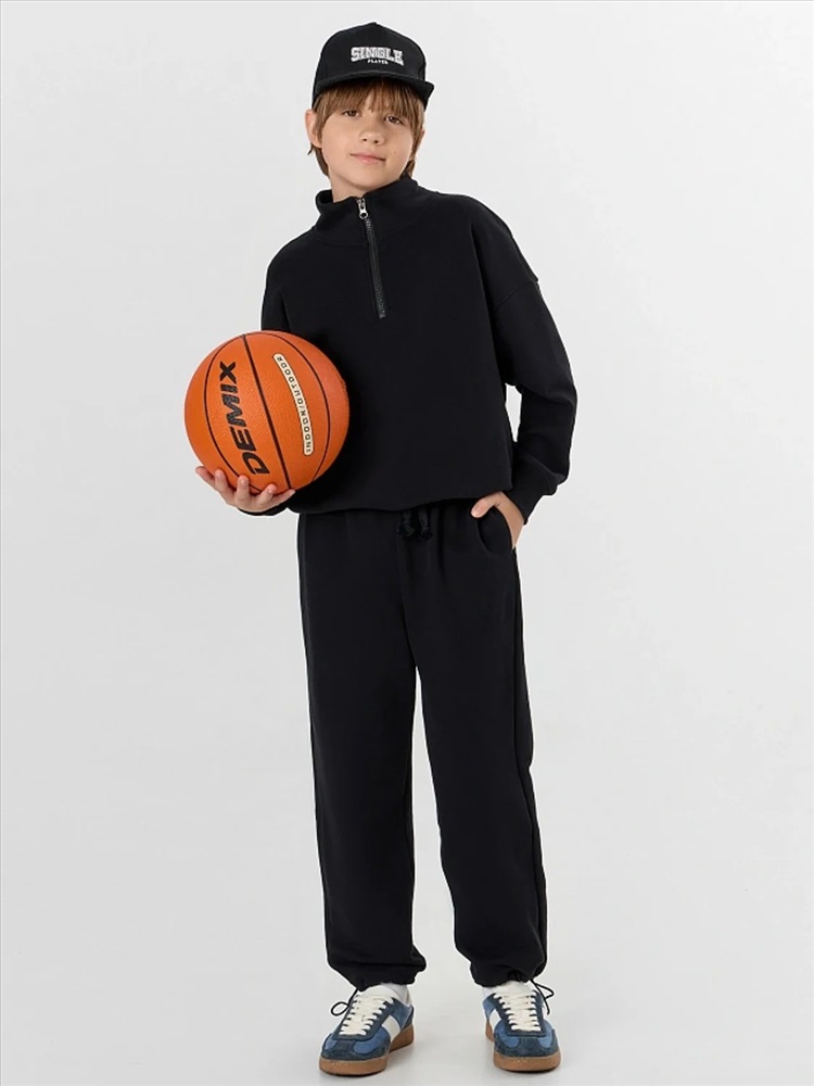 Черный спортивный костюм для мальчиков — это комфорт и практичность для активного образа жизни. Набор из свитшота и брюк-джоггеров выполнен из хлопка, который обеспечивает мягкость, воздухообмен и безопасность для детской кожи.