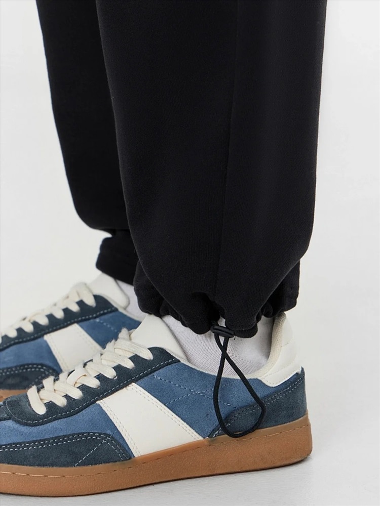 Свитшот свободного кроя с застежкой-молнией и воротником легко надевается и снимается. Спущенные плечи и длинные рукава на манжетах из рибаны не сковывают движений. Брюки-джоггеры с эластичным поясом и регулировочным шнурком обеспечивают идеальную посадку, а боковые карманы удобны для мелочей. Низ брюк обработан резинкой для аккуратной фиксации.