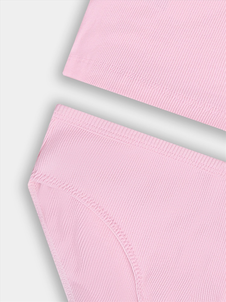 Трусы для девочек. Деталь переда цельнокроеная. Ластовица из трикотажного кулирного полотна. Задняя деталь цельнокроенная. Верхний срез трусов обработан окантовкой из основного полотна с эластичной тканой жилкой внутри. Нижние срезы трусов обработаны тканой жилкой