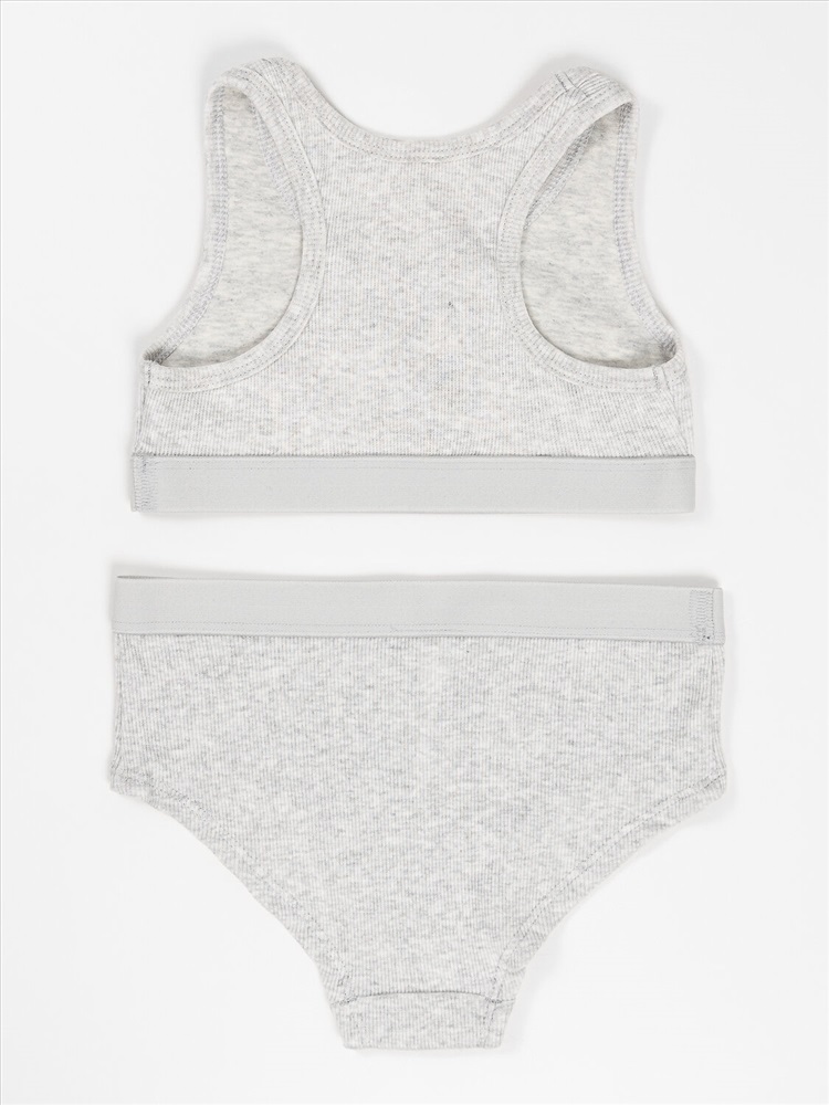 Трусики выполнены из того же дышащего материала, что и топ. Мягкая обработка швов предотвращает натирание, а эластичная тесьма по верхнему краю надежно фиксирует изделие. Комплект нижнего белья для девочки подходит для повседневной носки, занятий спортом или отдыха.