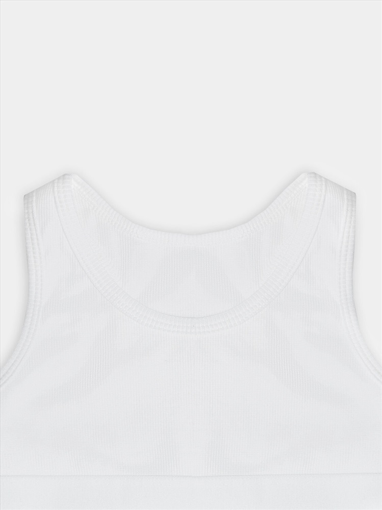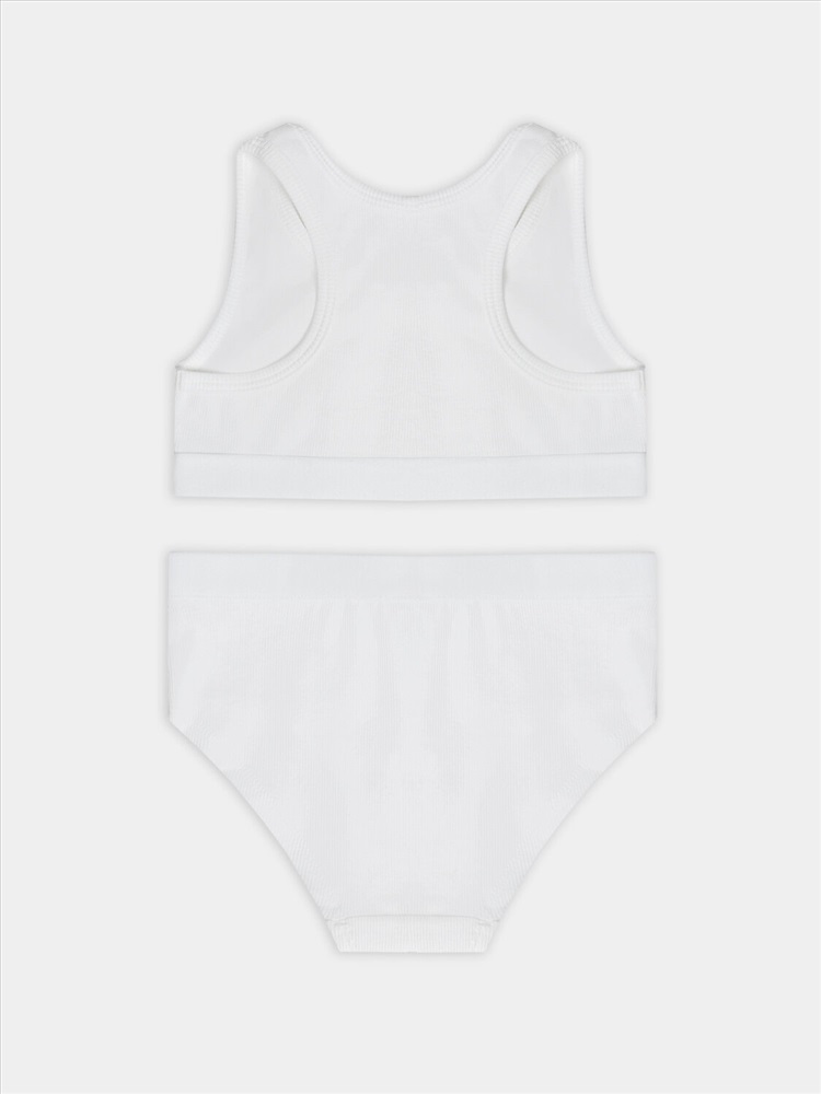 Детский комплект нижнего белья для девочки состоит из удобного топа и трусиков. Топ с круглой горловиной и фигурной спинкой, как в спортивных моделях, обеспечивает комфортную поддержку. Внутренняя подкладка из мягкого хлопка с добавлением эластана не раздражает кожу. Эластичная жаккардовая тесьма по нижнему срезу топа и горловине обеспечивает аккуратную посадку без сдавливания.