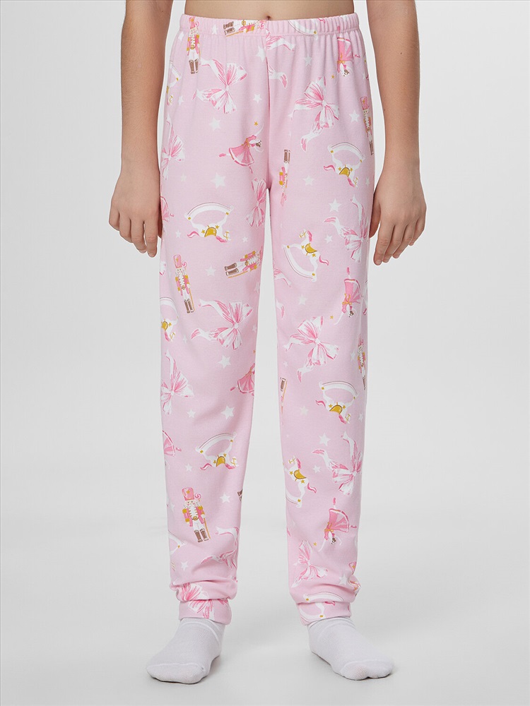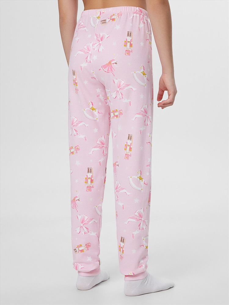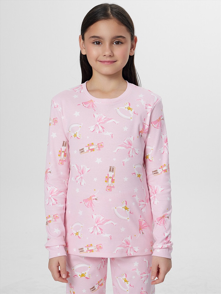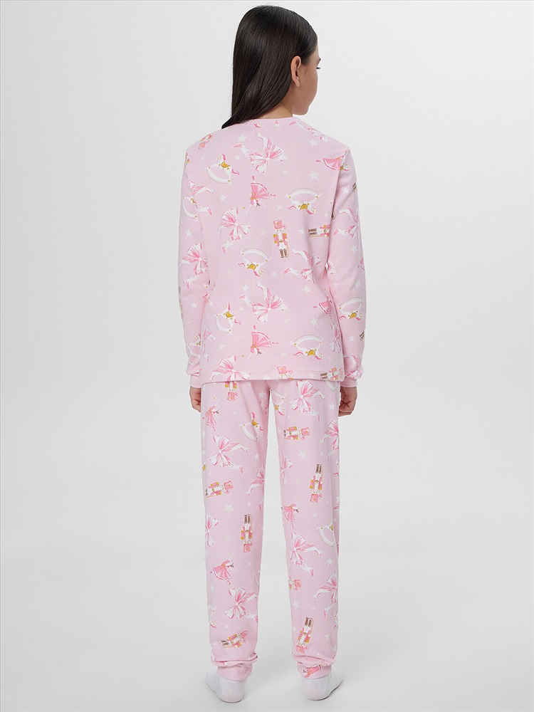 Очаровательный домашний комплект для девочки создан для комфортного отдыха и крепкого сна. В набор входит джемпер свободного кроя с длинными рукавами и удобные брюки прямого силуэта - идеальная пижама для девочки для прохладных вечеров.