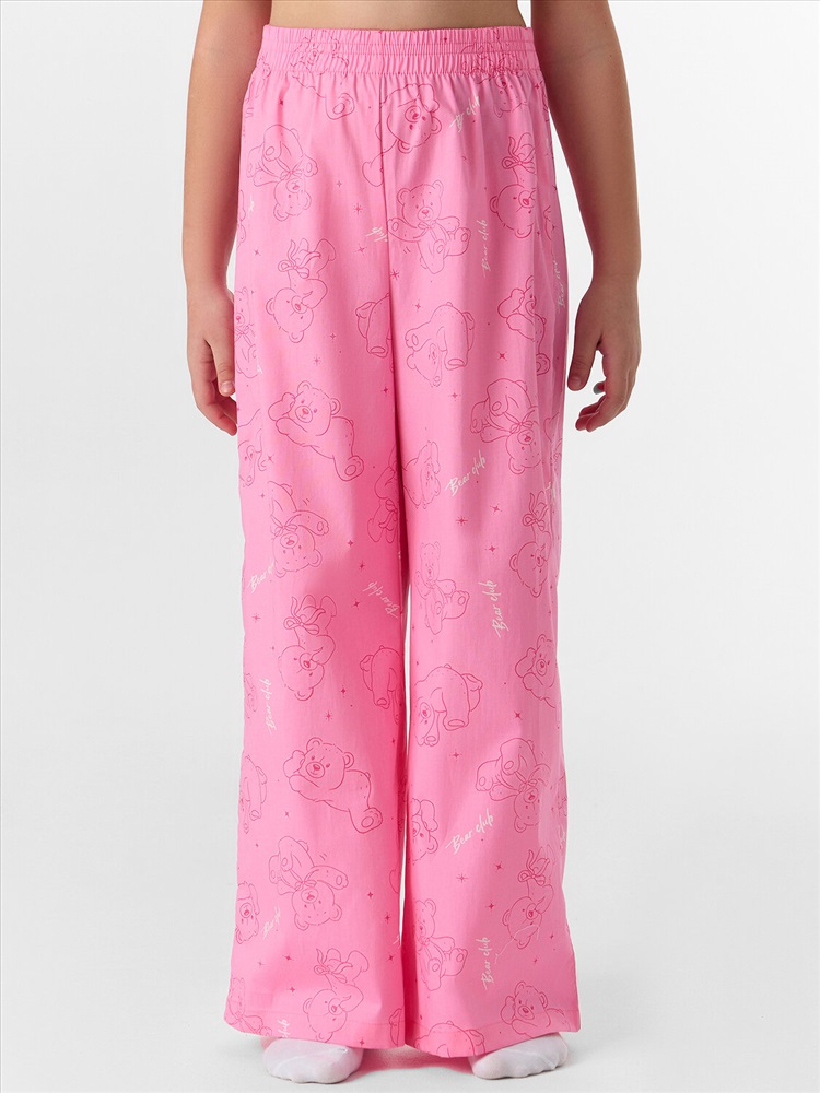 Брюки свободного силуэта. Пояс цельнокроеный внутри с резиной 40RV. Низ брюк в подгибку.
